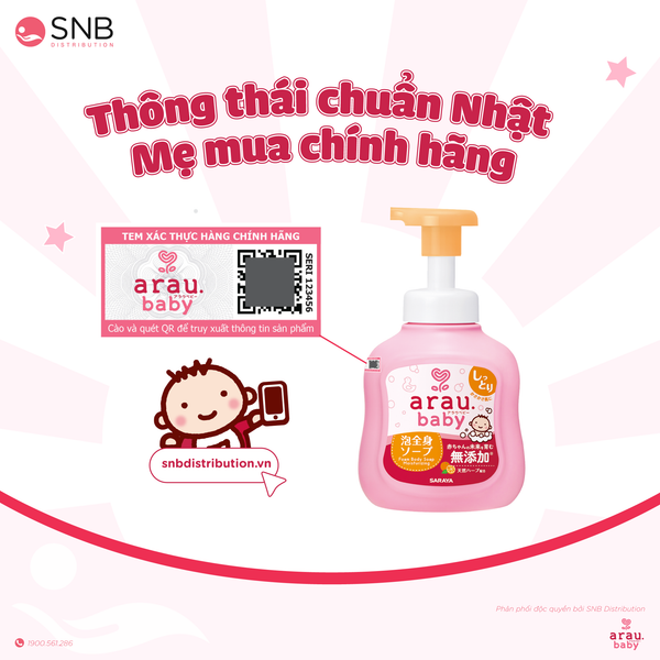 Chỉ sử dụng sản phẩm arau.baby chính hãng khi có đầy đủ tem phụ và tem QR của SNB Distribution